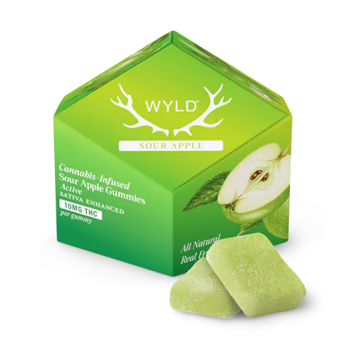 Wyld’s mouth-watering Sour Apple gummies are infused with THC and Sativa terpenes for a vibrant, uplifting high.